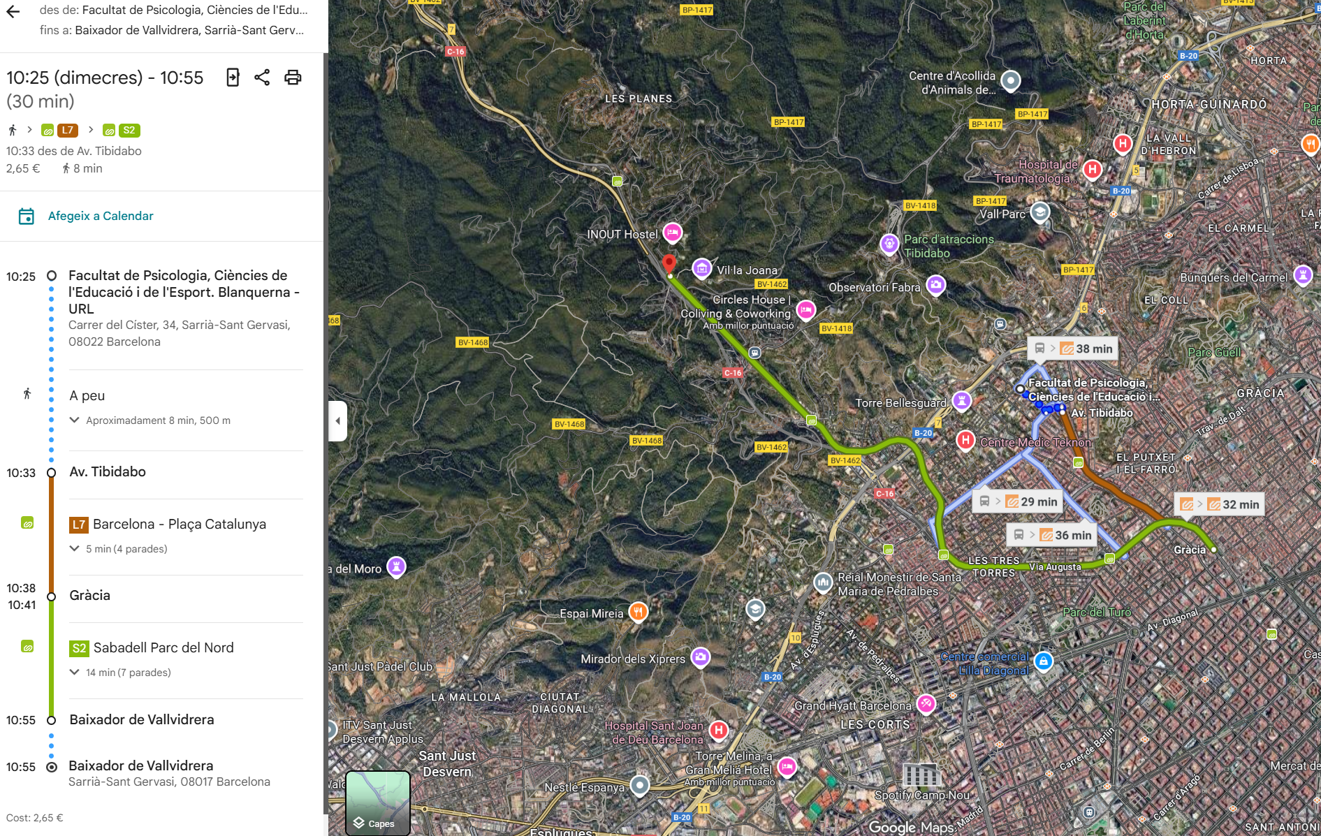 Agafar el tren a Av.Tibidabo fins Sant gervasi Fer transbors a S1 o S2 fins a la para de Baixador de Vallvidrera